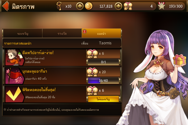 จะต้องเล่นจนผ่าน Quest ดังต่อไปนี้ เพื่อให้เราได้รับ คะนนมิตรภาพ
