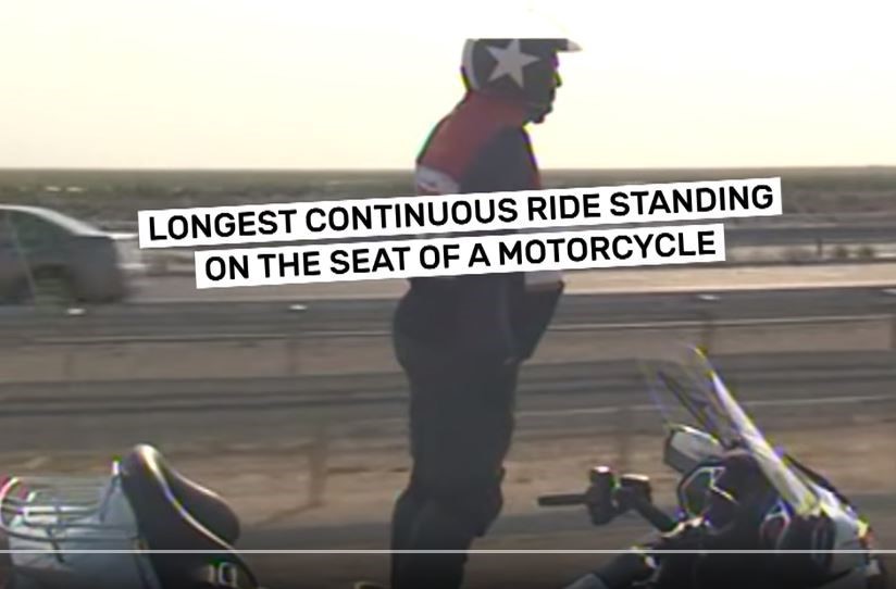ด้วยการยืนขับบิ๊กไบค์ด้วยความเร็ว 90 กิโลเมตรต่อ ชั่วโมง (km/h)