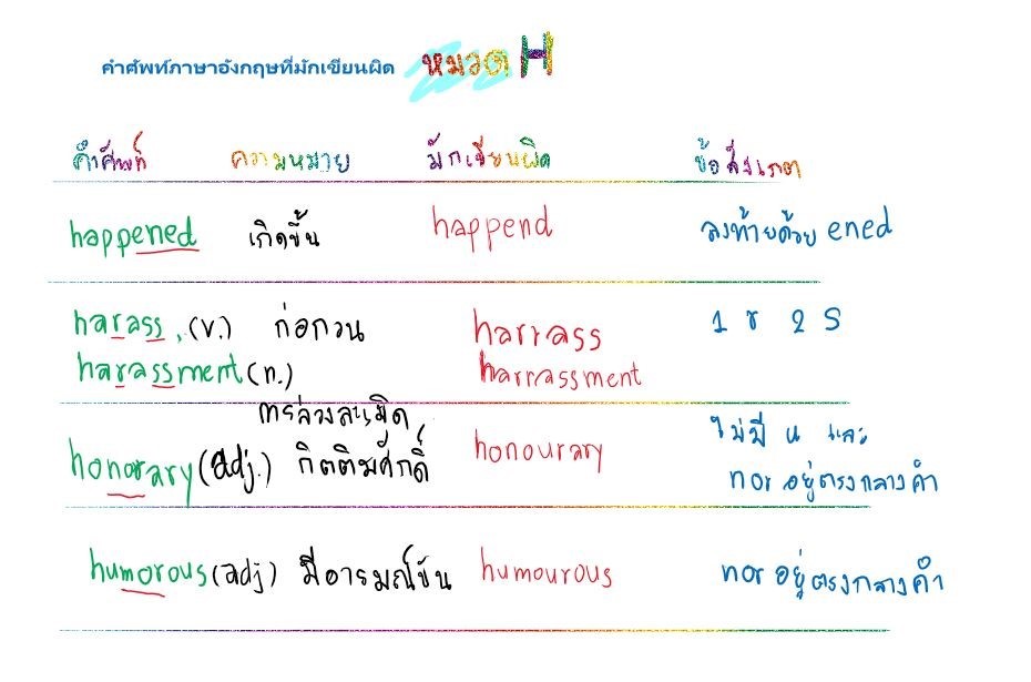 คำศัพท์ภาษาอังกฤษที่มักเขียนผิด หมวด H